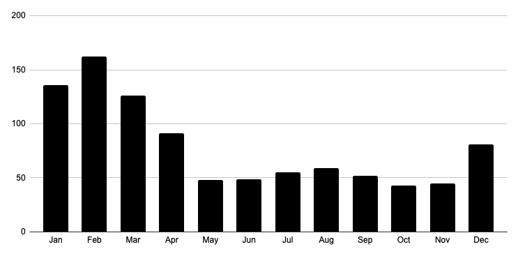Here’s a graph of inquiries by month.